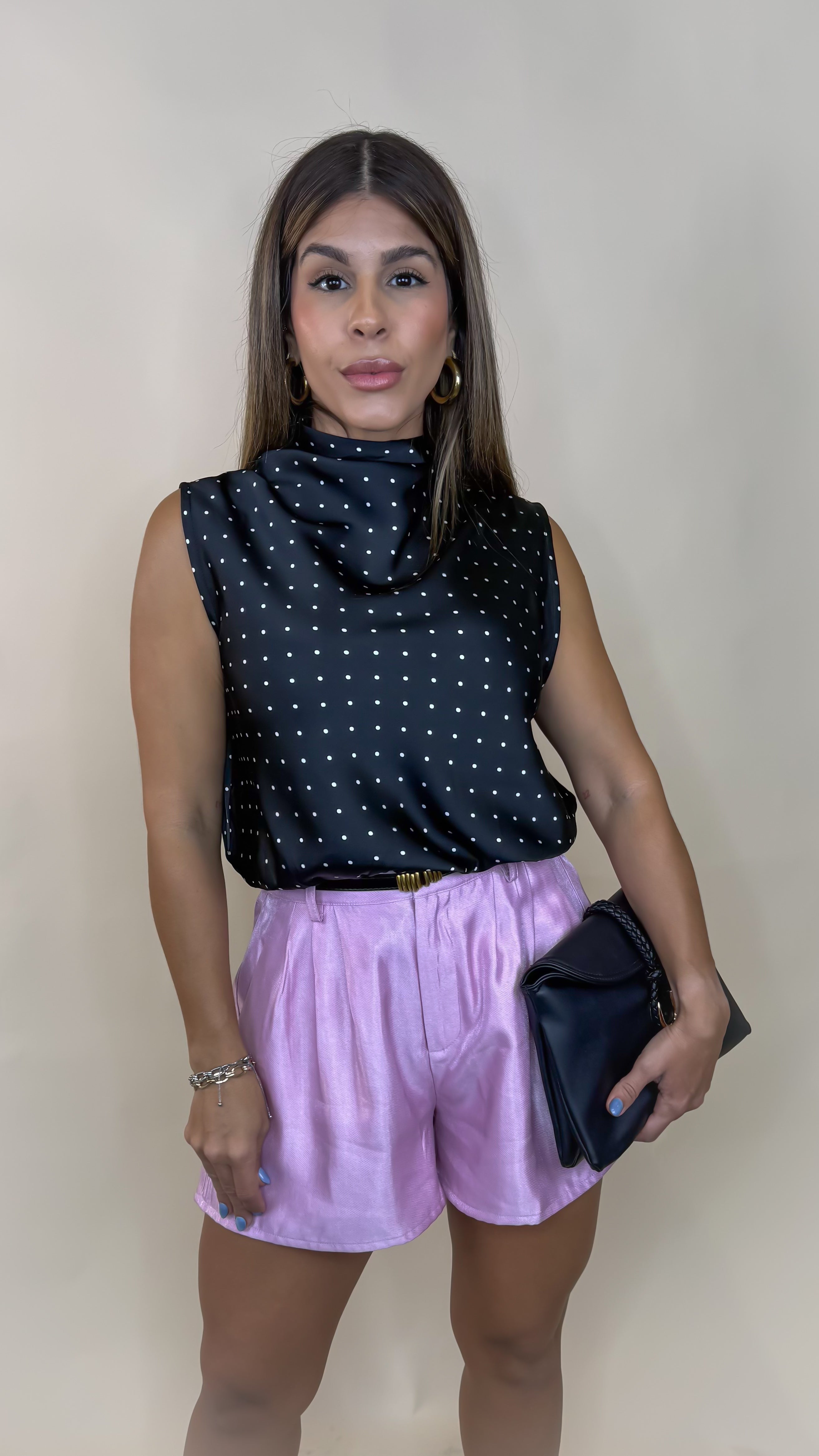 “ELOISE” POLKA DOT HIGH NECK SLEEVELESS TOP IVORY
