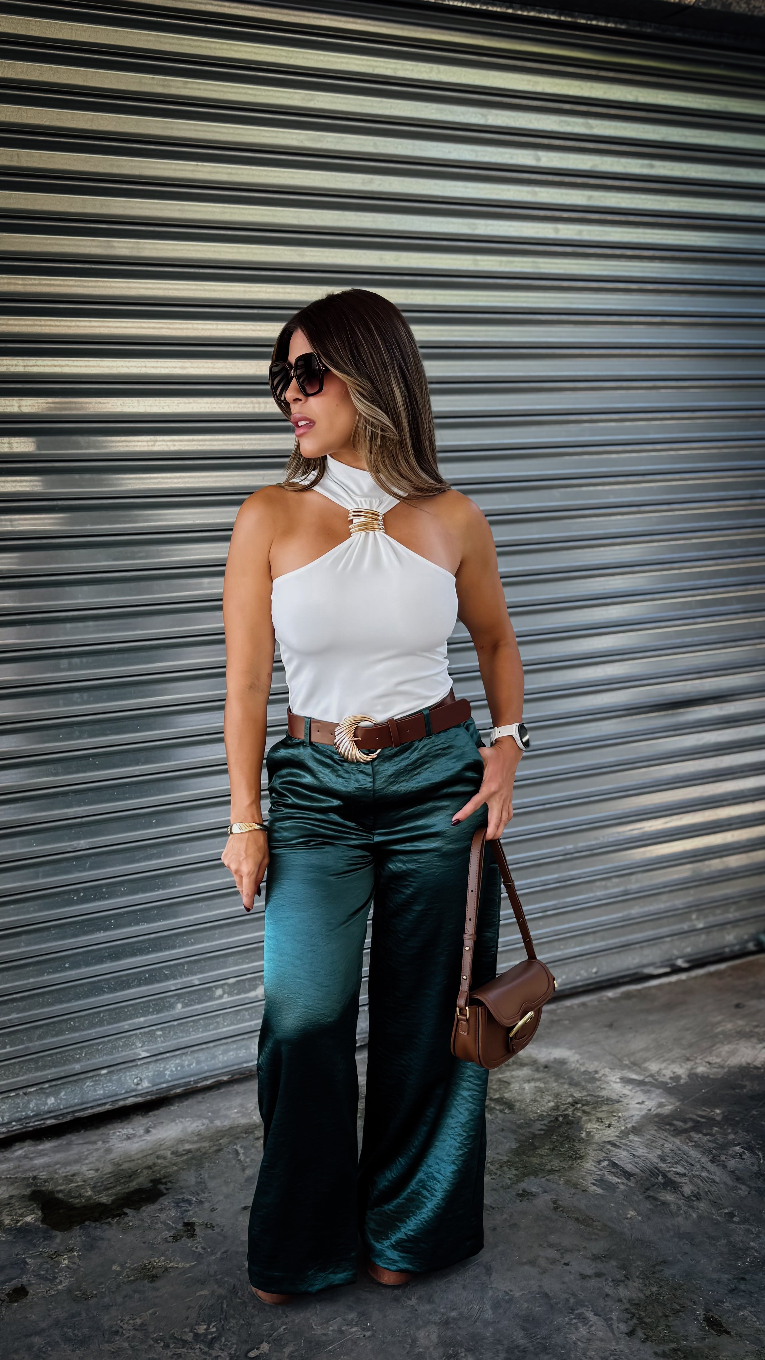 “GILLIAN” SILKY WIDE LEG PANTS WITH BELT
