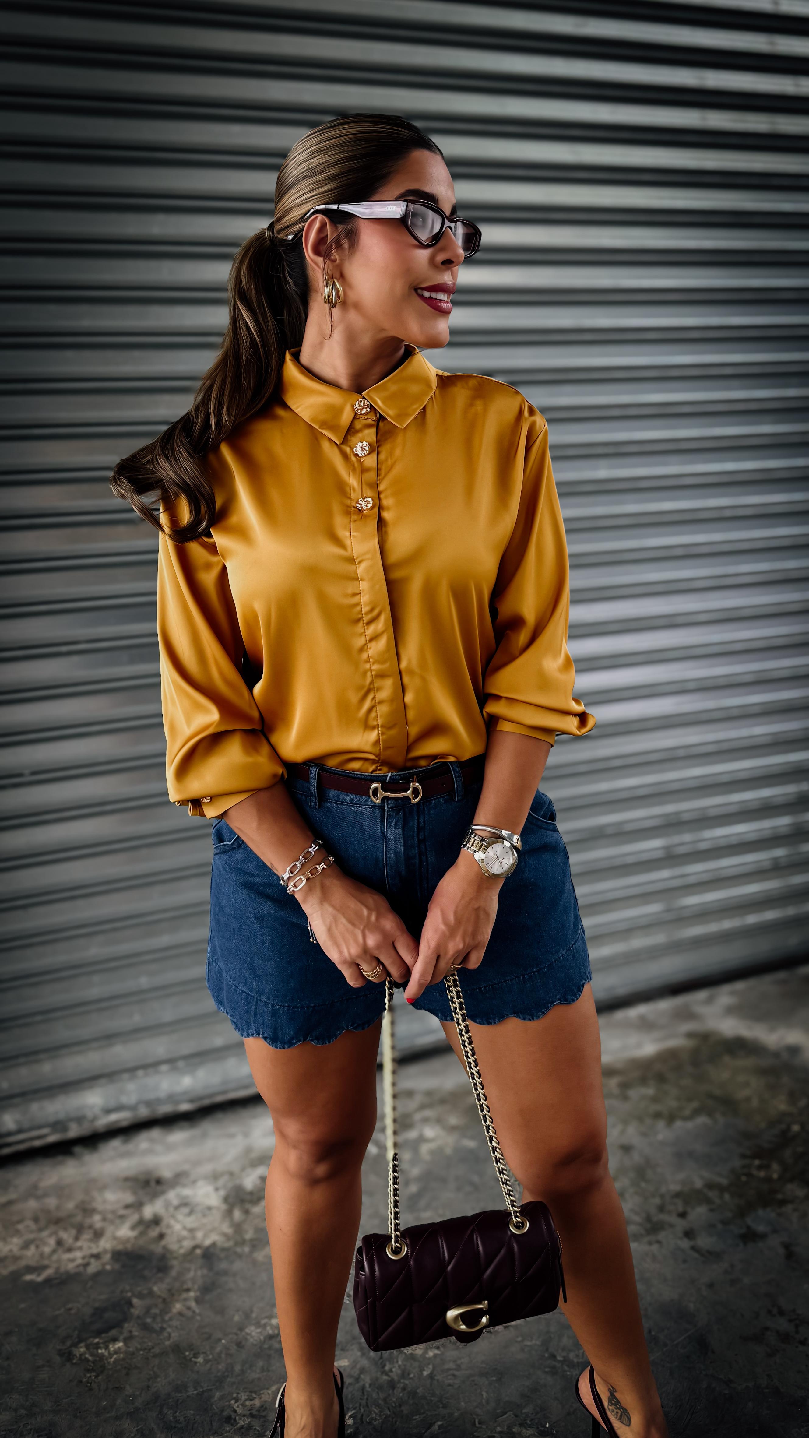 “PAULA” BUTTON DOWN COLLARED SILK BLOUSE